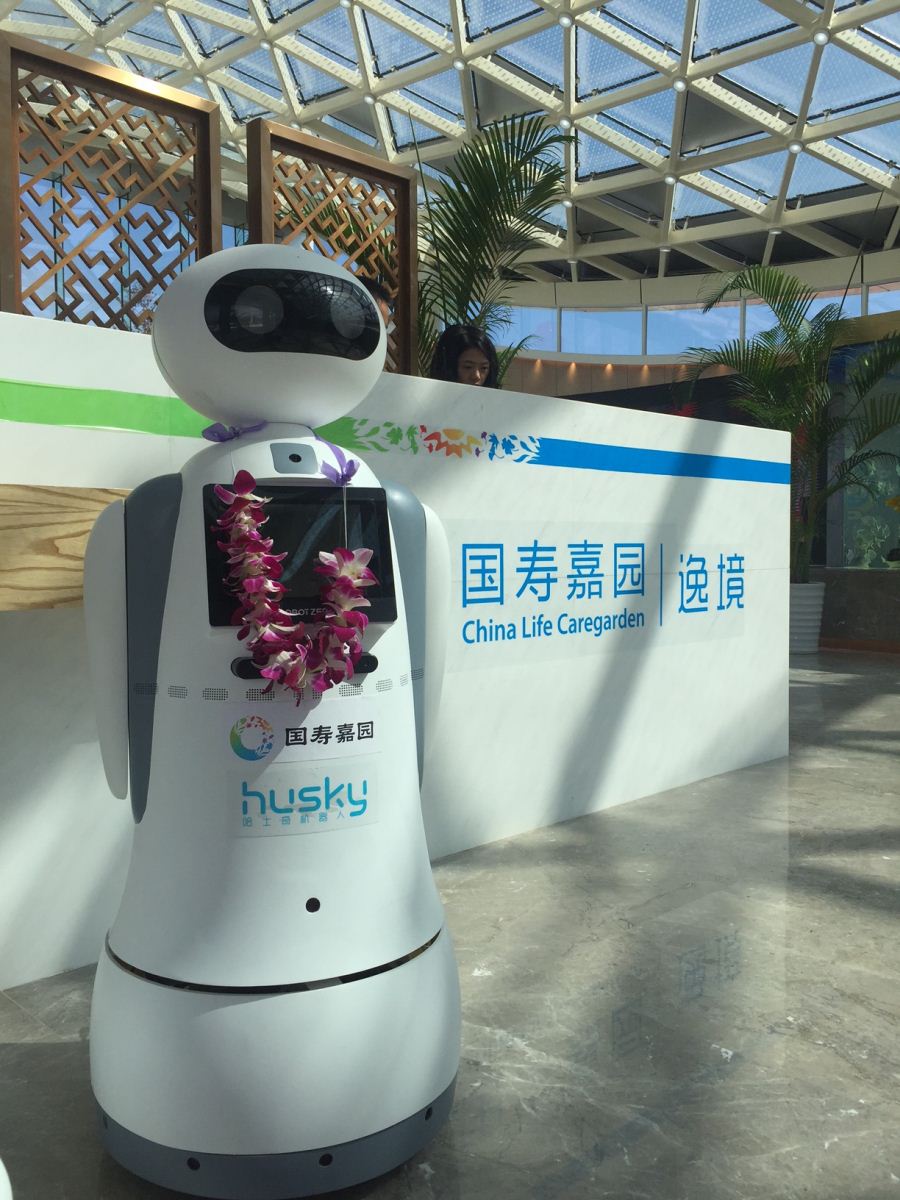 据新闻报道2017年1月20日国寿嘉园三亚项目率先引入了一款名为小康的健康服务机器人。(图2:哈士奇小康健康服务机器人)
